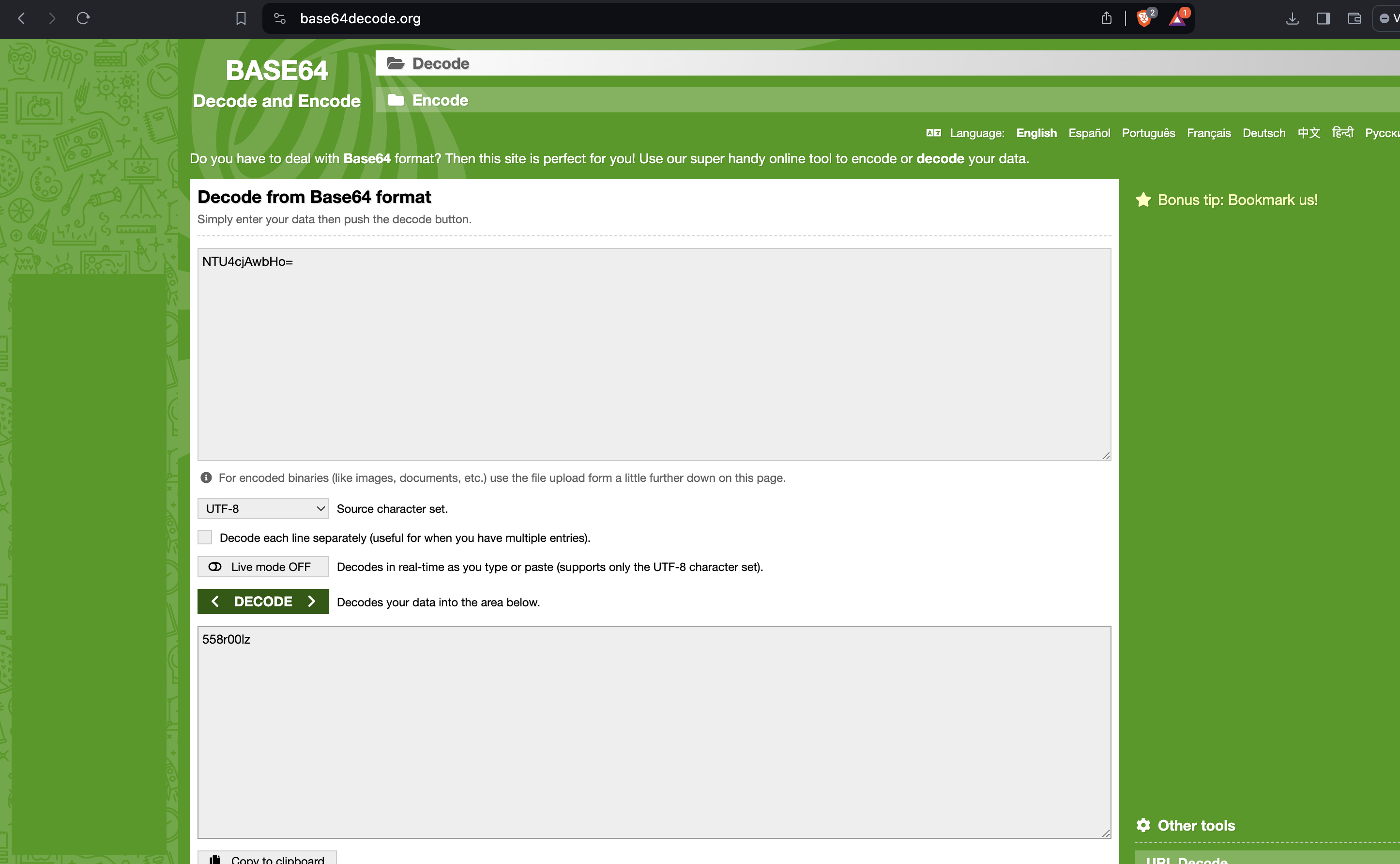 Answer: “558r00lz”